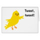¡Este pájaro amarillo amarillo lindo es pío, piando un saludo feliz!