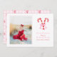 Tarjeta de Navidad de Cañas de Caramelo de Navidad Acuarela Elegante Lazos Rosas con foto personalizable y texto editable.