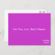 "Cáncer de Adiós" es una postal morada caliente con el título: "Coma. Reza. Amor. {Barf.} Repita." y "¡Adiós cáncer!" Ilustraciones provocativos y suaves del caricaturista April McCallum. "Creando cejas y haciendo impresiones" para la toma de conciencia sobre el cáncer de mama.