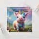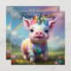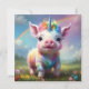 En el corazón de un prado vibrante con flores silvestres, un lechón colorido de unicornio se repite alegremente bajo el arco de un arcoiris radiante que se extiende a través del cielo. El cuerpo suave y regordete del lechón está adornado con rosa pastel y púrpura, con parches brillantes de oro y azul que captan la luz del sol. Sobre su diminuta cabeza hay un cuerno espirado, delicado y brillante con una luz azul irrisoria, como si tuviera la esencia misma de la magia.