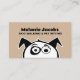 Sesión de perros, caminar y preparar tarjetas de visita. Diseño moderno en blanco y negro con ilustracion con el logo de la mascota de perro con dibujos animados. Agregue el nombre y los servicios de su empresa. Plantilla de diversión para caminante profesional de perro / caminante, perrillo / grooming, veterinario (veterinario), mascota sentado y otros servicios de cuidado de mascotas. Fondo de color marrón o personalizado. Esquinas redondeadas opcionales.