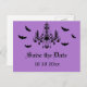 Una araña espeluznante y un grupo de murciélagos acentúan esta postal de Halloween Guardar la fecha.