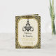 Tarjeta de agradecimiento con foto de candelabro Art Deco negro, con una frontera en estilo Art Deco y damasco floral negro y dorado sobre beige/ecru. Tu foto está en la parte izquierda interior. Este diseño elegante es un enfoque moderno a un estilo vintage/retro que se asemeja al de los felices años veinte y El Gran Gatsby. Es parte de un conjunto de boda y es completamente personalizable.