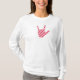 Celebra la temporada navideña de los Navidades con esta camiseta que muestra el cartel de "Te amo" en ASL (Lenguaje de Rótulo Americano) llena de un lindo patrón de rayas de caña de caramelo en rojo y rosa.