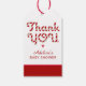 Añada un toque festivo y sincero a los favores de tu bebé con estas etiquetas de regalo "Gracias", diseñadas en la tipografía de caña de caramelo rojo con encanto de las vacaciones dulces. Perfecto para atarse a bolsas de fiesta, regalos o dulces, estas etiquetas le dan un alegre toque de color y espíritu estacional a su ducha de bebé de invierno. Personalice el nombre de su bebé con un toque personalizado que los huéspedes apreciarán.