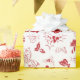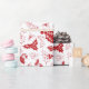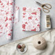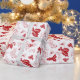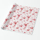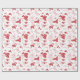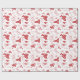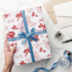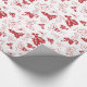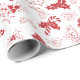 Papel blanco de envolvimiento de vacaciones con un patrón rojo de hojas y bayas huecas sobre un fondo blanco con un poco de estilo retro.