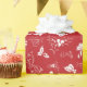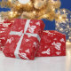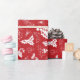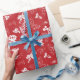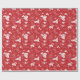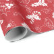 Navidades rojos envolviendo papel con un patrón blanco de hojas y bayas huecas sobre un fondo rojo con un poco de estilo retro.