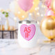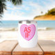 Un corazón de caramelo rosado que dice, "COMO SI."