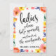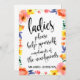 Un elegante letrero de boda de vanguardia, presenta el texto "Señoras, por favor ayúdense, cortesía de los recién casados" en una fuente de escritura extrovertida, la textura del pincel añade un sentimiento espontáneo y juguetón. El color de fondo se puede personalizar según tus necesidades y preferencias, por favor contáctame si tienes alguna solicitud especial.