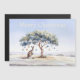 Un canguro Navidad sentado bajo un árbol de goma decorado con azulejos. Feliz saludo de Navidad