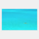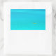 Pegatina fotográfico reangular de un hombre chapoteando en una lancha de canoa en la brillante laguna azul de la isla tropical Bora cerca de Tahití en el archipiélago Pacífico Polinesia Francesa.