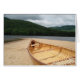 Fotografía de una canoa que se cubría cerca de un lago en colinas cubiertas por el bosque.