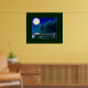 "LA CANOA SAGRADA de Skye Ryan-Evans © Este único Poster de arte al estilo nativo americano presenta una canoa sagrada de Haida amarrada en un lago iluminado por la luna, con Ravens presentándose como símbolos de misticismo y poder. La cara sonriente de la Luna fue creada a partir de un diseño de Haida Totem Pole que representaba a la Luna. Disponible en tamaños más grandes y pequeños en esta tienda de Zazzle. "La canoa sagrada" también se comparte en varios otros artículos de regalo para difundir el mensaje de lo sagrado de la vida silvestre y de nuestros lugares salvajes. Los pueblos de las Primeras Naciones de Haida saben muy bien lo frágil que es el equilibrio de la naturaleza. Por eso uso a menudo los símbolos de las Primeras Naciones para representar la belleza de nuestros lugares naturales y los preciosos animales que los habitan. Si podemos aprender a vivir en armonía con la Naturaleza y no en desacuerdo con ella, tendremos la oportunidad de reparar los daños causados por la contaminación, la minería, la perforación y la tala de nuestras vastas tierras forestales. Si seguimos nuestro rumbo actual, el planeta descenderá a un grave desequilibrio que no se puede restablecer. Por favor, ayúdanos a difundir el mensaje usando nuestras camisetas y carteras y mostrando nuestros stickers de parachoques que promueven la armonía ambiental y la protección de la vida salvaje. El 25% de los ingresos procedentes de la venta de cualquier artículo de esta colección se donan directamente a Defenders of Wildlife en: www.defenders.org