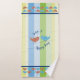 Toalla de personalizado divertida y colorida con tiras de colores y pájaros decorativos, con la frase "Canta una canción feliz". Puede personalizar la redacción, el tipo de letra y el color del tipo de letra en el momento de realizar el pedido. El diseño de las toallas está impreso únicamente en la parte delantera, la parte trasera de la toalla es blanca. Este diseño es creado por mí, cuando pides la toalla será imprimida por una empresa de satisfacción de Zazzle.