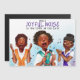 Un trío femenino afroamericano vestido de blanco con fajas de colores individuales canta alabanzas para las fiestas, haciendo un ruido alegre con las manos, la voz y la instrumentación.