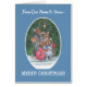 Una tarjeta de Navidades con el saludo, 'De nuestra casa a la tuya' y una familia de lindos ratones cantando Navidades Carols. Este diseño es de un ilustracion acuático pintado a mano por Judy Adamson.