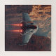 A futuristic fighter rips through a sandstone canyon, twin afterburners blazing red against the rugged cliffs. Cinematic lighting and crisp details make this an exciting, immersive build and a striking display once framed. Perfect gift for aviation buffs, gamers, and sci-fi fans. Choose your preferred size and piece count on Zazzle.