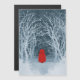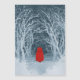 Pequeña Caperucita Roja en un invierno nevado caminando por el bosque. ¿Puedes ver al Gran Lobo Malo aullando a la distancia? Una versión borrosa de una pintura acuarela negativa.