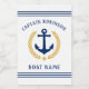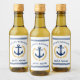 Un conjunto personalizado de etiquetas de botellas de vino mini con su rango de capitán u otro título y su nombre de barco, nombre de familia u otro texto deseado. Con un ancla náutica diseñado por un personalizado, hojas de laurel de estilo dorado y emblema estrella con rayas de cuerda azul marino. Cambia fácilmente el color de fondo para que coincida con tu decoración o temática actual. Es un gran complemento de temática náutica para cualquier ocasión.