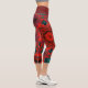 Estas leggings psicodélicas presentan un color rojo brillante y verde azulado profundo en un patrón asimétrico caleidoscopio.