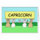 Personalizado viene en un campo sosteniendo un cartel que dice 'Capricorn'. Algunos de los conejitos también sostienen zanahorias.
