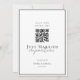 Elegante, moderna, manuscrita, blanca, tarjeta Boda con el nombre de la pareja y fecha Boda, incluido el código QR para la Galería fotográfica. Celebra tu amor y saluda a tus invitados con estilo con nuestra tarjeta personalizada! ¡Asegúrate de que no pase desapercibido ningún momento especial desde tu día de bodas! Esta elegante tarjeta de códigos QR es una manera divertida e interactiva de recopilar fotos de sus invitados. Coloca las tarjetas en las mesas de tu recepción o las distribuyes en tu recinto para animar a los clientes a participar en un reto único. Invite a sus seres queridos a escanear el código QR y a subir sus fotos—ya sea el mágico "First Kiss" durante su ceremonia o el alegre brindis de grupo en la recepción. Con sólo un escaneo rápido, sus huéspedes pueden aportar sus fotos a su galería de bodas personalizada, asegurándose de que no se pierda un momento tan querido. ✨ Cómo funciona: Crea tu galería de Bodas - Configura un espacio en línea para recopilar fotos de invitados. Personalizar Esta tarjeta - Edite los nombres, fecha y código QR para que coincidan con los detalles de su boda. Que comience la diversión - Distribuya las tarjetas y anime a los huéspedes a escanear y compartir sus imágenes. Personalizable completo - Personalice cada detalle para que se ajuste a su estilo boda. Colección de memoria inagotable - Diga adiós a perderse en asombrosas tomas sinceras. Interactivo y divertido - ¡Haz que tus invitados se involucren en capturar y compartir tu historia de amor! Haga de su boda una experiencia inolvidable, una experiencia que viva a través de los ojos de sus invitados.