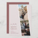 Presentamos nuestra cautivadora Boda "Capturar el Amor" Guardar la Tarjeta de Fecha, una encantadora mezcla de nostalgia y estética contemporánea. Este diseño único resume la esencia de su viaje juntos, invitando a sus seres queridos a marcar sus calendarios para su día especial. El fondo transmite un aire de encanto vintage, que recuerda a las clásicas tiras de las cabinas de fotos que albergan preciados recuerdos. Los tonos mullidos de color suave y terracota forman el fundamento de esta paleta de colores de moda, que evoca sentimientos de romanticismo y de intemperie. Estos tonos se entrelazan con elegancia, creando un fondo armonioso que acentúa el foco principal de la tarjeta. En primer plano, una organización artística de tus fotos de compromiso favoritas ocupa el centro del escenario. Cada marco contiene un momento apreciado congelado en el tiempo, invitando a los huéspedes a compartir su alegre viaje. El emparejamiento de fuentes para el texto es una encarnación de la elegancia moderna. Los principales detalles, como los nombres de la pareja y la fecha del boda, están maravillosamente escritos en un sofisticado estilo serif. Esto, por el contrario, complementa el texto de apoyo, que emplea un elegante tipo de letra caligráfica. La combinación no sólo refleja la dualidad de tu historia de amor, sino que también aporta un toque de refinamiento al diseño general.