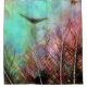 Las plumas de pavo real contra un agua en tonos pastel, rosa y amarillo, parecen asombrosas en esta cortina de ducha