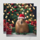 Esta imagen capta el ambiente acogedor y festivo con el capibara en un sombrero de Santa, rodeado de regalos y un entorno de bokeh de ensueño.