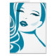 Agradable tema retro de chicas en tonos azul cian y blanco. Una mujer hermosa y sensual cara y cuello. Dibujo divertido, retro.