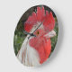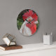Cara de gallo blanco marrón, reloj de pared redond