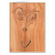 Cara en tarjeta de felicitación con fotos de madera. Los ojos y la nariz estaban juntos en una cerca de madera que estaba pasando. Encontré la boca en otra tabla