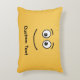 Una cara sonriente, con los ojos abiertos. Texto personalizado en ambos lados.