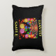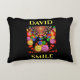 Lanza almohada negra con caras sonrientes y nombre personalizado.