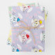 Algunas sábanas de papel de envoltura en tonos pastel con rostros de conejito blanco dulce y láminas de papel. Perfecto para regalos de Pascua o de ducha para bebés. © ArianeC Ilustraciones-Todos los derechos reservados