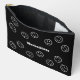 Silueta blanca caras alegres sobre un fondo negro GRAN bolsa accesoria. Tanto el color de las caras, el texto y el fondo felices se pueden colorear como se desee utilizando la herramienta de 'edición de diseño' de la plantilla. Viene en pequeño también, por favor vaya aquí para otras opciones: https://www.zazzle.com/collections/pouches_cosmetic_or_toiletries_bags-119531158092049477?rf=238986706153284958 Diferentes colores y diseños disponibles.