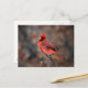Un hermoso cardenal macho espera su turno en un alimentador de aves en un día nevado.