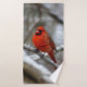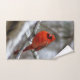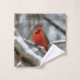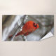 Un cardenal rojo brillante agrega un toque de color en un día espantoso y nevado.