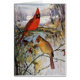 Un par de cardenales septentrionales (cardinalis de Cardinalis) se encarama en un arbusto color de rosa en esta escena hivernal. Un ilustracion del vintage a partir de 1915.