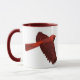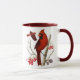 Los " cardenales en" la taza de café salvaje capturan la majestad de un cardenal encaramado en la tolerancia del frente así como de este pájaro salvaje en vuelo en tamaño y color completos en el lado trasero de la taza.  Acentuado con un borde y una manija marrón, esta taza hermosa está segura de aclarar la mañana de cualquier amante de naturaleza.