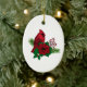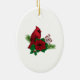 Pájaro cardenal rojo dibujado a mano encaramado en un ramo de ramas de abeto de Navidades de poinsettia y bayas rojas