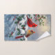 Un par de cardenales rojos norteños se posan en una rama sagrada cubierta de bayas rojas y nieve.