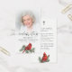 Keep the memory of a loved one close with this custom personalized prayer card featuring one cherished photo, a watercolor cardinal bird, the title CELEBRATING THE LIFE OF NAME and dates on the front and an editable prayer or your custom message accented with a simple cross and cardinal on the back. It makes a meaningful keepsake to share at a funeral, memorial service or Celebration of Life and offers comfort and a lasting tribute for family and friends. Its small and portable size of 3.5x2" (wallet-sized) makes it convenient for loved ones to carry it with them as a reminder of your loved one’s life and spirit. Personalization makes each card unique.