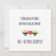 Esta divertida tarjeta de compromiso con un simpático tema de abejas y un juego de palabras de amor es perfecta para enviar tus más cálidos deseos de compromiso a un familiar o amigo comprometido. Con un dulce juego de palabras de amor y felicitaciones sinceras, esta tarjeta representa tus cálidas felicitaciones en su camino hacia el día de su boda. Las divertidas citas de compromiso y el diseño inspirado en abejas la convierten en una elección encantadora para celebrar su amor. En la parte delantera de la tarjeta, se lee cálidamente: "Felicidades por tu compromiso. Pareja bee-utiful". En la parte trasera, se añade juguetonamente: "¡Estoy zumbando de alegría por tu compromiso!". También puedes personalizar esta tarjeta para tu familiar o amigo que está comprometido, haciéndola aún más especial y significativa. Esta tarjeta es la combinación perfecta de felicitaciones sinceras y un toque de fantasía, lo que la convierte en una