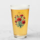 Un tumbler o un vaso bebiendo con un ramo de claveles rojos.