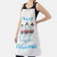 Tres muñecos de nieve cantando en la nieve, se imprimen en delantales personalizados. El texto, Feliz Navidad, está impreso como un borde superior e inferior en letras azules cubiertas de nieve. El texto se puede personalizar. Gracias por comprar en CherylsArt en Zazzle.