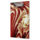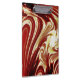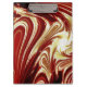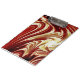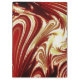 Un diseño artístico abstracto de aguas fluviales con colores rojo, dorado y blanco.