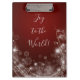 Carpeta De Pinza Alegría al mundo con copos de nieve blancos en roj