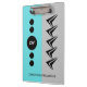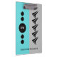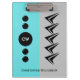 Portapapeles de Office. Agregar iniciales y un nombre. Gris y turquesa, con formas de flecha.