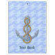 Ancla con ilustracion de cuerda sobre las olas fondo transparente azul claro sin costura. Texto personalizado.